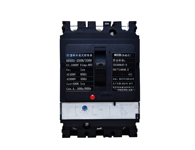 BRM3X系列塑料外壳式断路器(以下简称断路器)是采用双断点结构技术研究开发的具有国际先进水平的新一代断路器,适用于交流50Hz,额定绝缘电压至1000V,额定工作电压690V及以下,额定工作电流16A ~630A的配电网络中。断路器按额定极限短路分断能力(Icu)分为S型(基本型)、M型(标准型)、H型(较高分断型)、R型(高分断型)。断路器短路分断能力级别为:S、M、H、R型在AC400V电压等级以下均可倒进线连接,AC690V电压等级不可倒进线连接。断路器可在垂直安装板上竖装或横装,也可在水平安装板上安装。